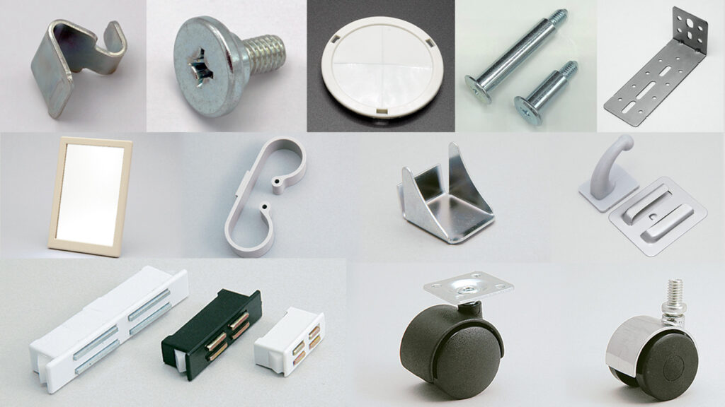 デスクや収納、チェアなど、あらゆるオフィス家具に対応するパーツを幅広く取り揃えています。